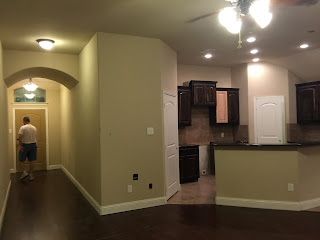 We drove out to the house tonight to see if any work was done. All I noticed was the 1/4 round baseboard trim in the garage and the paper removed from the wood floor. I confirmed that only one exhaust fan is working in the master bath. I think the TV and phone drops may have been wired today but not sure. We also tried out the doorbell for the first time.